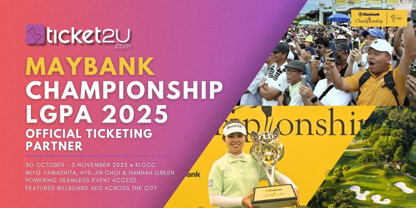 As a trusted name in event ticketing across Southeast Asia, Ticket2U continues to set the benchmark for efficient, secure, and user-friendly event solutions. The partnership with the Maybank Championship LPGA represents another proud step forward in bringing innovation, precision, and convenience to global sporting events, where technology keeps the excitement flowing from ticket purchase to tournament day.