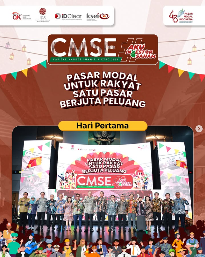 CMSE 2025 merupakan rangkaian kegiatan dari peringatan 48 Tahun diaktifkannya kembali pasar modal Indonesia, yang diselenggarakan oleh PT Bursa Efek Indonesia (BEI), PT Kliring Penjaminan Efek Indonesia (KPEI), PT Kustodian Sentral Efek Indonesia (KSEI), didukung oleh Otoritas Jasa Keuangan (OJK) akan menyelenggarakan kegiatan Capital Market Summit & Expo 2025 (CMSE 2025) bertema ”Pasar Modal untuk Rakyat: Satu Pasar Berjuta Peluang”.
