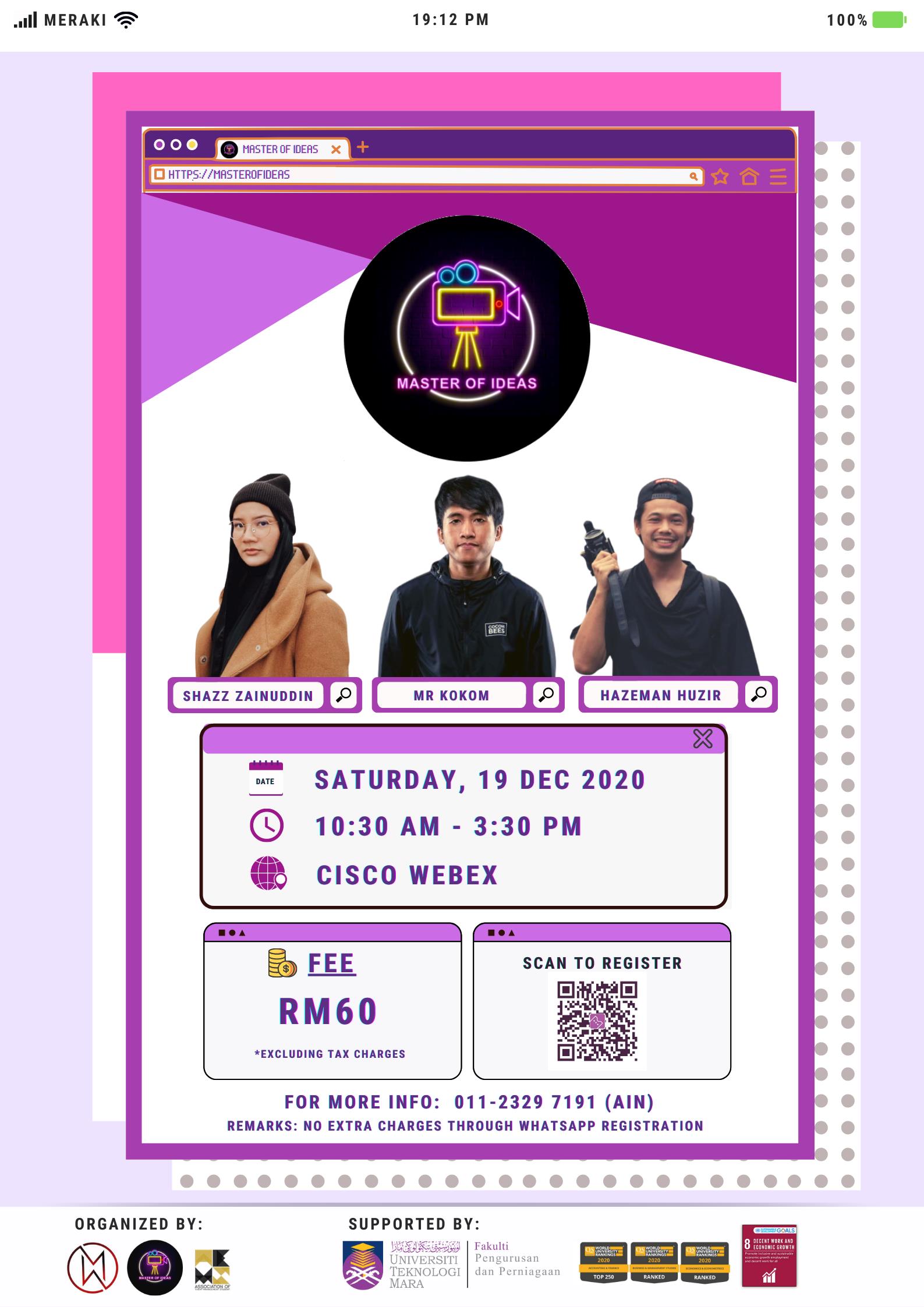 Content creator is someone who is responsible for the contribution of information to any media and most especially to digital media. A content creator can contribute any of the following: blog, news, image, video, audio, email, social updates and other related content. Master of Ideas is a platform for famous content creators in Malaysia to share their knowledge to public community. Master of Ideas is also an event specially created for those who want to become a digital content creator. Through this event, we hope that sustainable development goals which is decent work and economic growth, can be achieved.