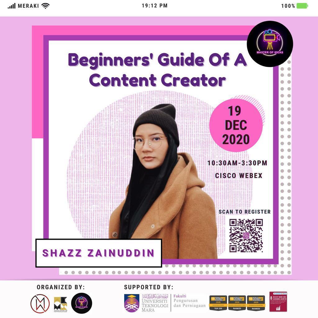 •SESSION 1: SHAZZ ZAINUDDIN (Title: Beginners’ Guide of a Content Creator)