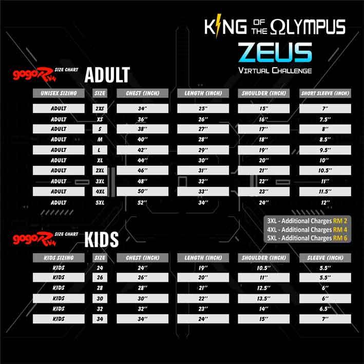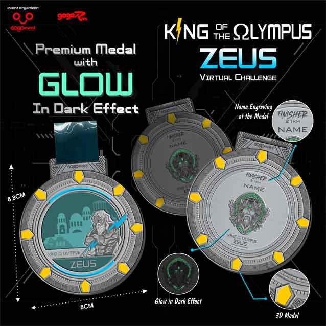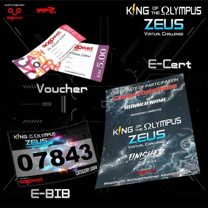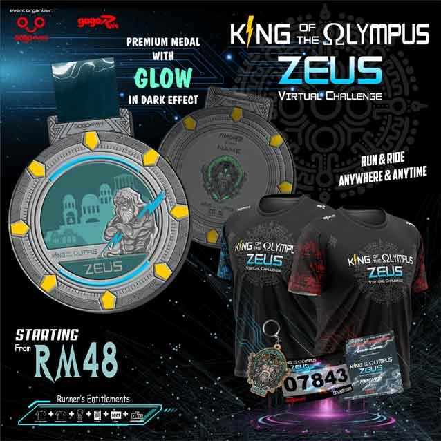 ZEUS - King Of The Olympus Virtual Challenge is organized by Go Go Event (a subsidiary company of Nilai Crystal & Souvenirs Sdn Bhd). The virtual run is open to all residents who have valid address in Malaysia.