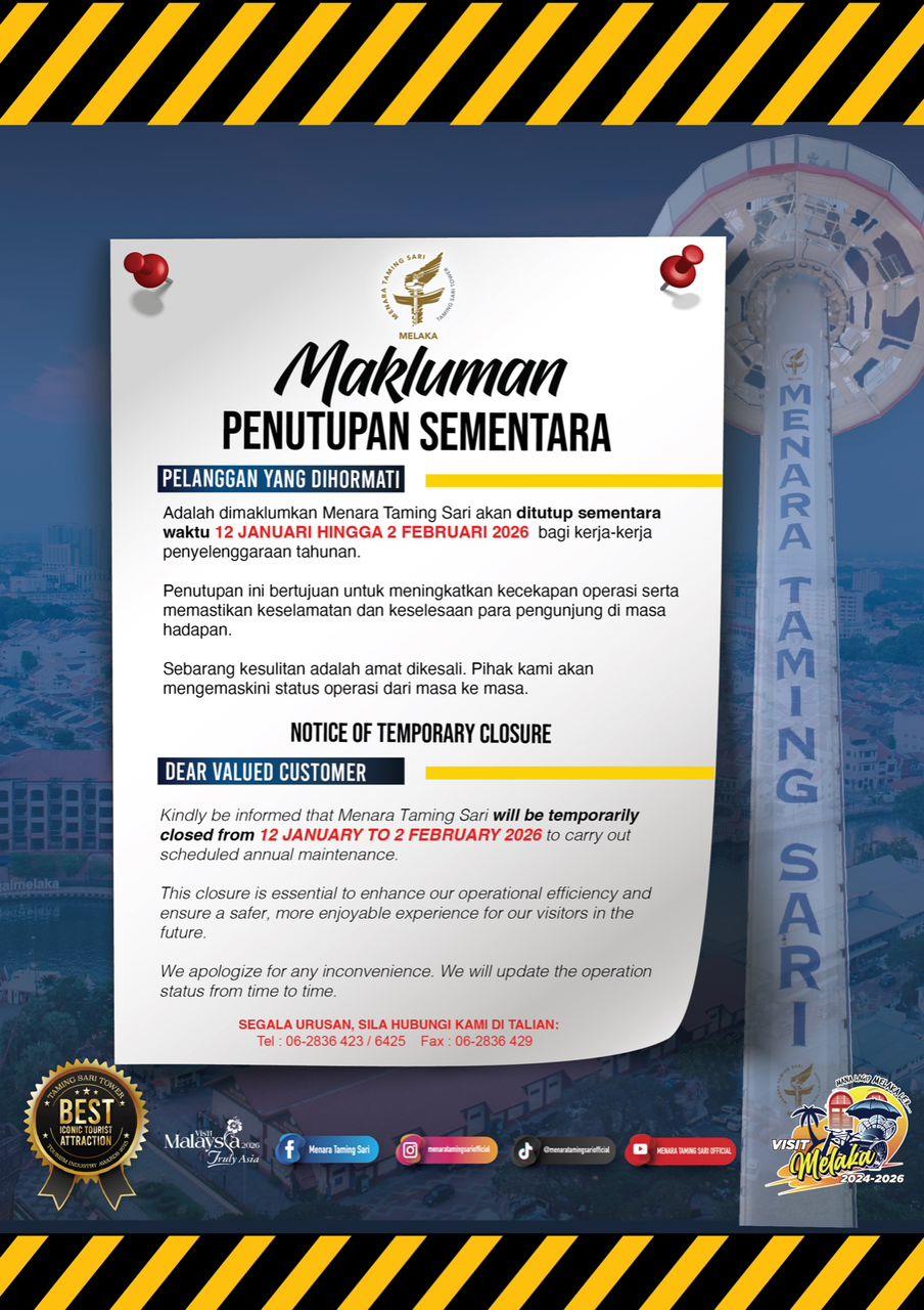 Experience the beauty of Melaka 110m above the city onboard Malaysia's first and only gyro tower, Menara Taming Sari