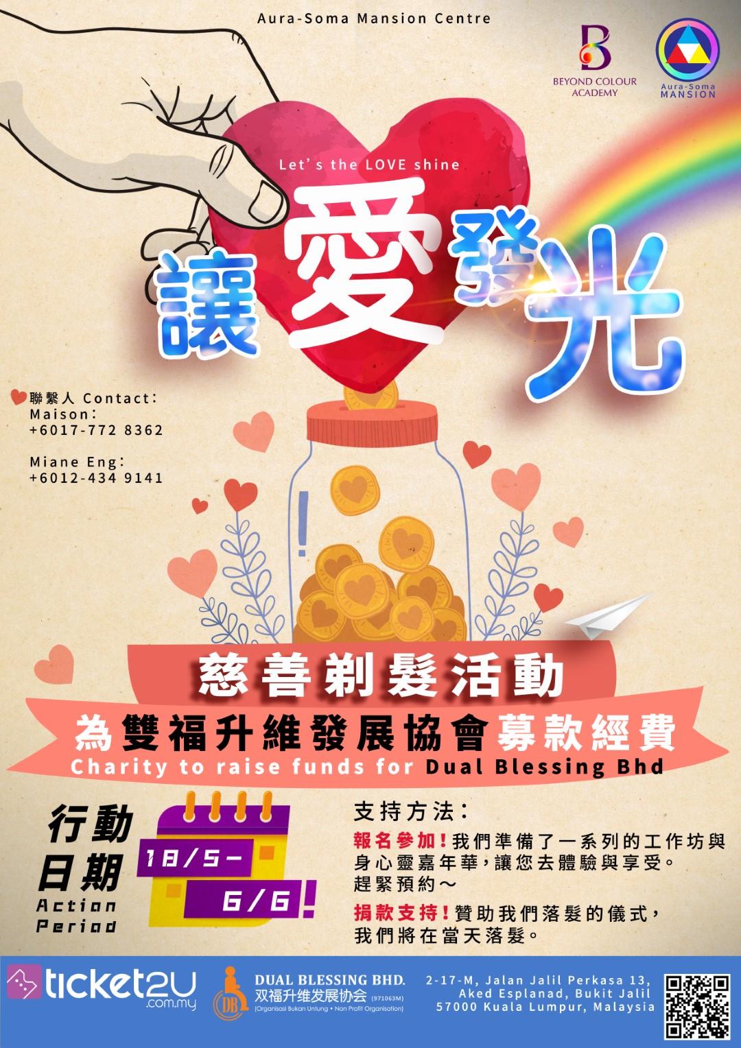•凡捐款Rm120 以上,您將能夠參與於【讓愛發光工作坊】
