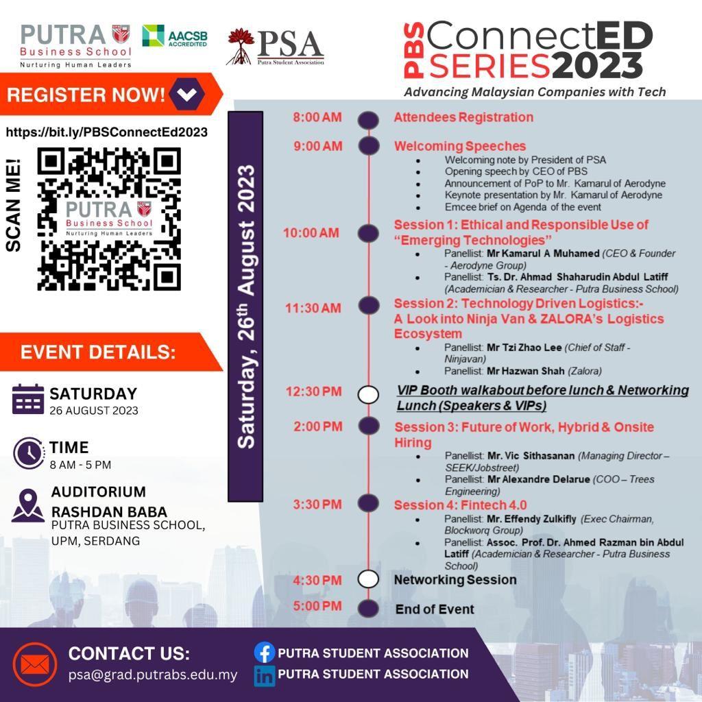 PBS ConnectEd Series 2023: Advancing Malaysian Companies with Tech; aims to bring together the best of technology and networking, empowering you to explore the latest advancements at our tech-themed conference, gain insights from industry leaders, and connect with like-minded professionals. Get ready to unlock new opportunities through our mini job fair!