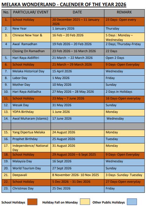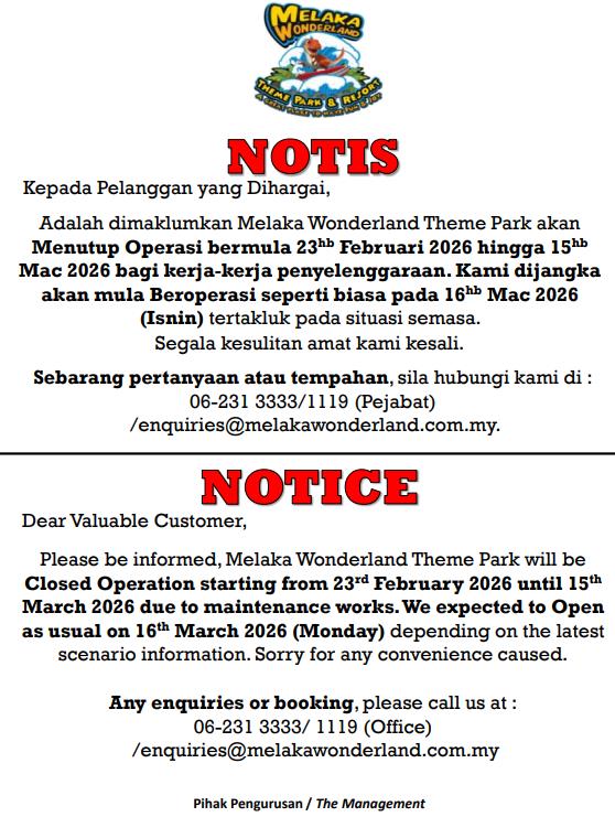 Recently, Melaka Wonderland Theme Park been recognized by The Malaysia Book of Records for 2 category record such First Lighting Event In Water Theme Park & Largest Lighting Event In Water Theme Park for succeeded holding Lighting Event In Conjunction Year Visit Melaka 2024. Not to forget, Recognition from MATFA for Golden Horse Awards 2023 for 2 categories which are Best Family Friendly Park & Best Practices in Regulatory & Safety & from MyMalaysia Tourism Awards 2023 for 2 awards for The Excellence Tourist Choice Family Theme Park & The Excellence Tourist Choice Halal Theme Park.