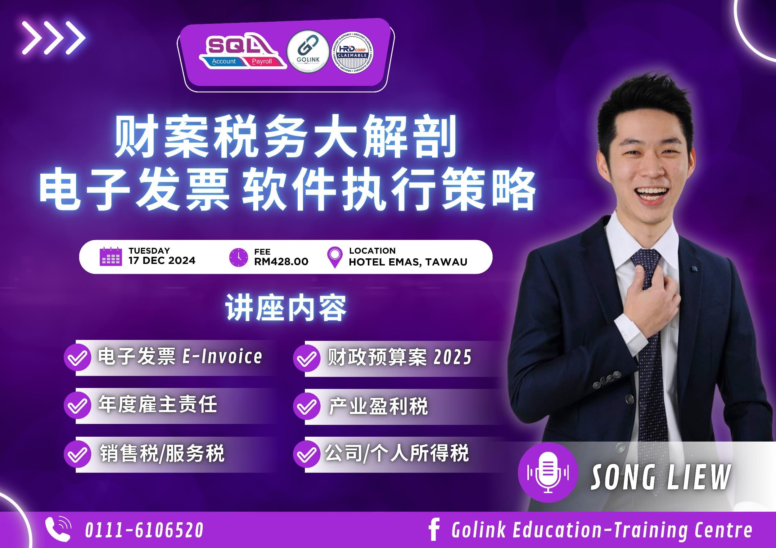 2024年税务变动、电子发票新规、企业必知的财务要点,所有热点一日全覆盖!这次 Golink Hub Sdn Bhd 与 ANC Group 强强联合,让您从容应对新财年!这堂课绝对是年度重磅必修,不容错过!