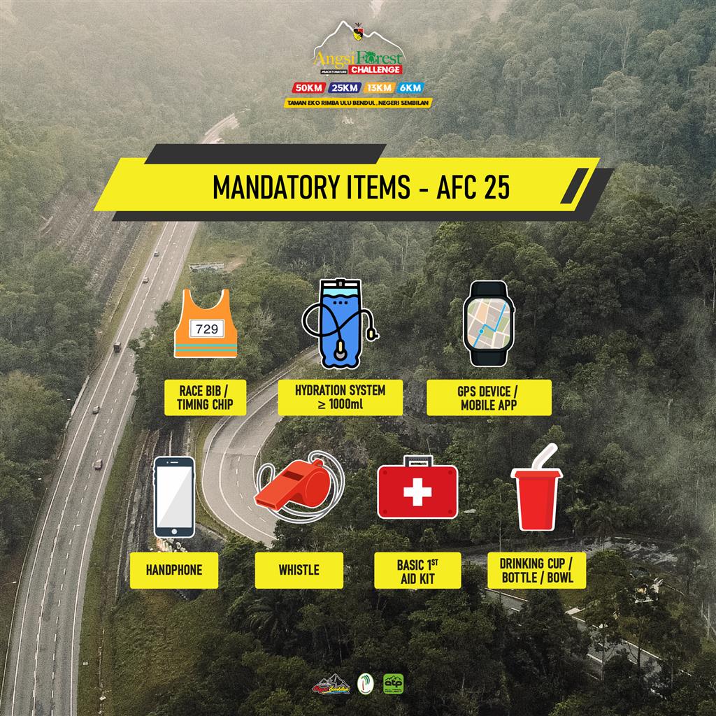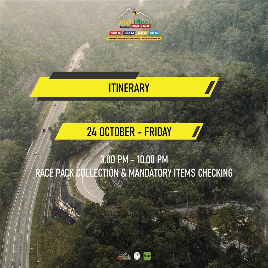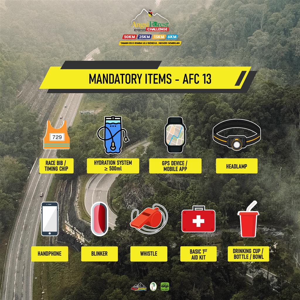 Compulsory to 50KM, 25KM & 13KM runners to do mandatory items checking on 24 or 25 October at Race Village.