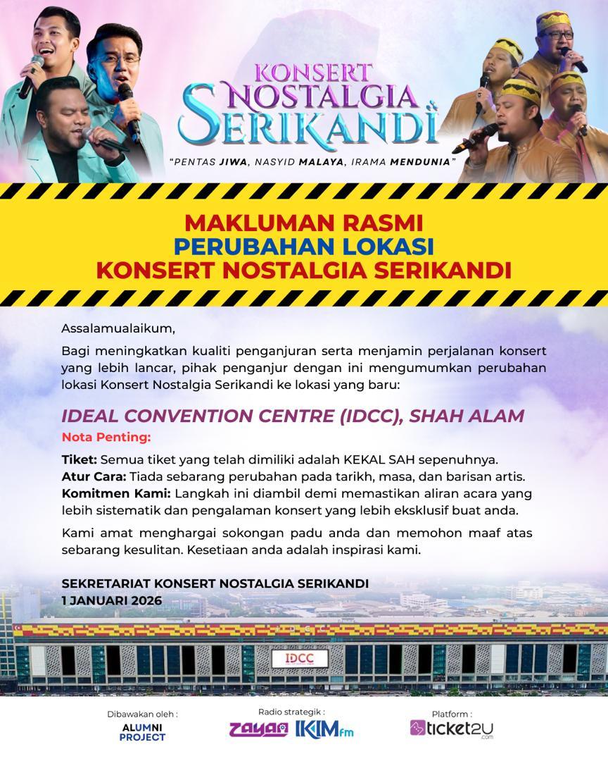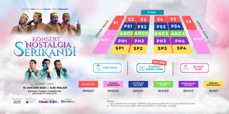 •Sebarang perubahan akan dimaklumkan melalui saluran rasmi konsert.