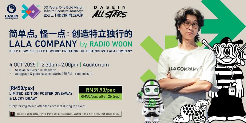 对创作有独特想法?欢迎走进 Radio Woon 的插画世界! 他是 Dasein 校友、LALA COMPANY 创办人,也是知名潮玩 「MEGA SPACE MOLLY 400% 榴莲人」 联名款的首位马来西亚设计师。