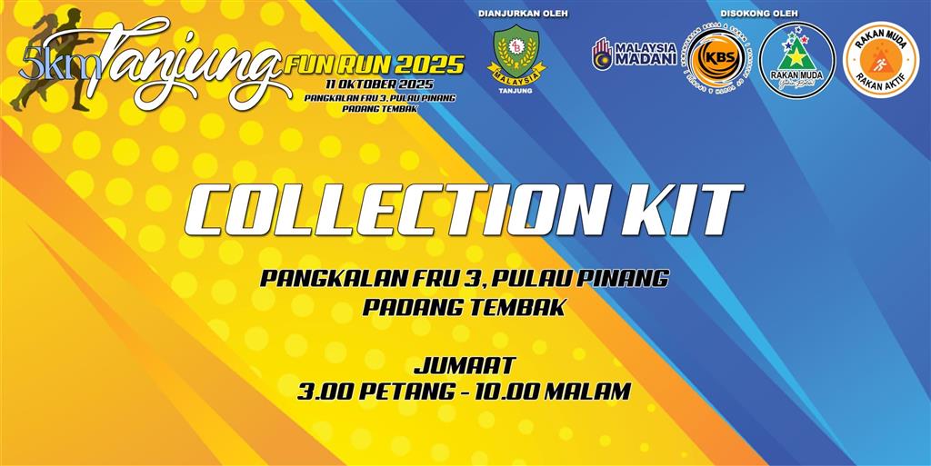 7. Pengambilan kit perlumbaan hanya dibenarkan pada tarikh dan waktu yang telah ditetapkan oleh pihak penganjur. Sebarang pengambilan pada pagi hari acara TIDAK dibenarkan dalam apa jua keadaan.