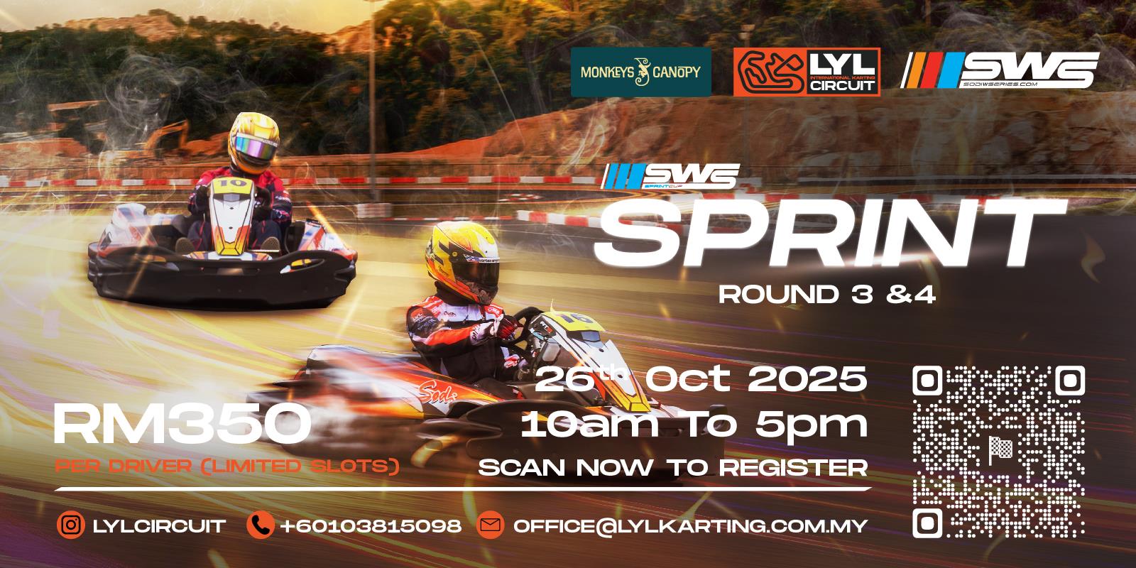 LYL International Karting Circuit organises and promotes the event named SWS Sprint Round 3 & 4. The sprint race is held as a social go kart racing event among karting enthusiasts. It will be held at LYL International Karting Circuit, Lot 683, Jalan Persiaran Bukit Enggang, Sg Long Hill, Sungai Long, 43200 Cheras, Selangor, Malaysia. This is a private event runs on commercial ‘arrive and drive’ basis and open to entry by individuals using karts supplied by the Partner Track.