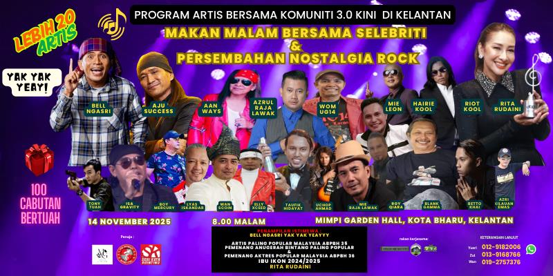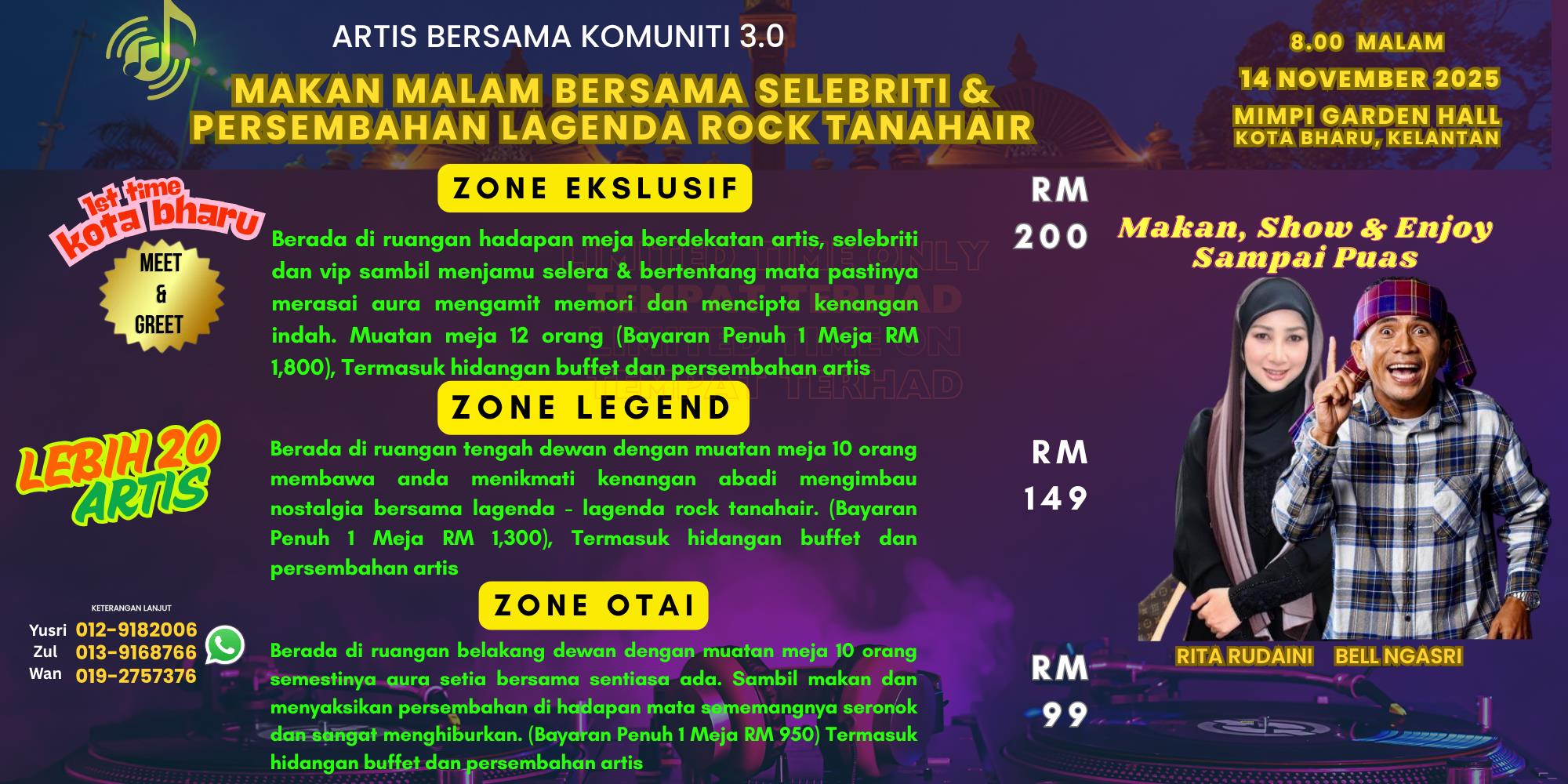 JOM MAKAN MALAM BERSAMA BINTANG PALING POPULAR M’SIA BELL NGASRI Yakk Yak Yeayy & AKTRES POPULAR RITA RUDAINI SERTA LEBIH 20 orang artis & selebriti di Kota Bharu.