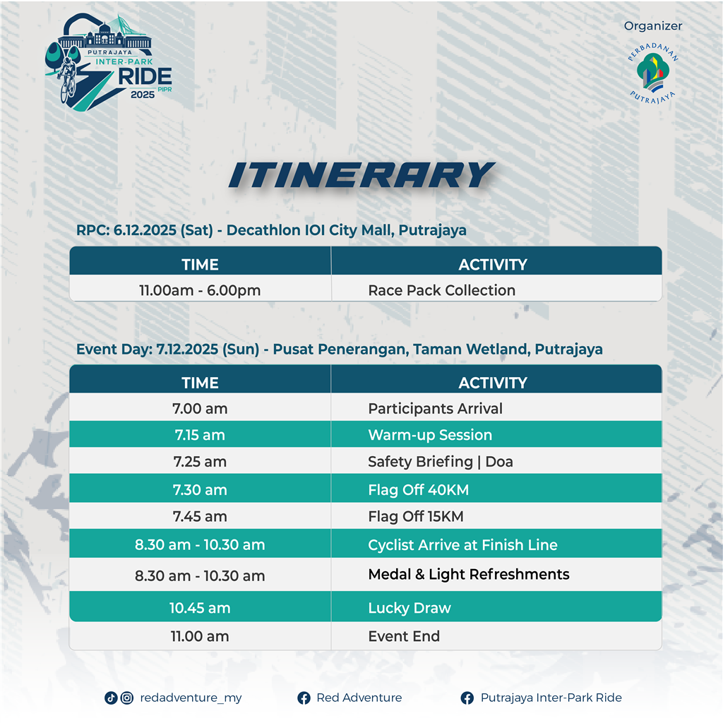 1. This PUTRAJAYA INTER-PARK RIDE 35 (PIPR 35) [“Event”] organized by MOJO CREATIONS [“MC” / “the Organizer”], is open to all Malaysian residents (Malaysian and non-Malaysian who are permitted and with valid residency in Malaysia) aged 12 and above.