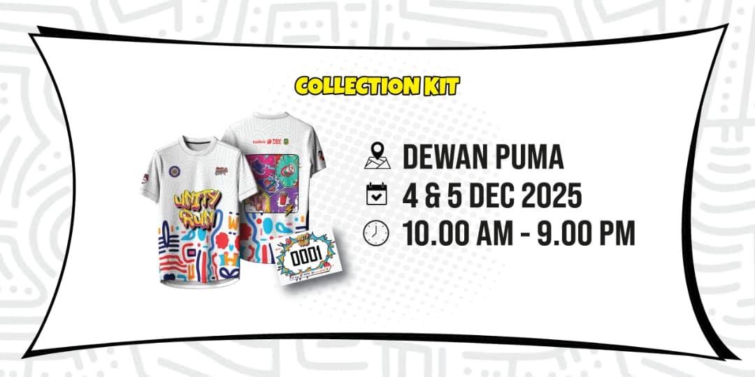 7. Pengambilan kit perlumbaan hanya dibenarkan pada tarikh dan waktu yang telah ditetapkan oleh pihak penganjur. Sebarang pengambilan pada pagi hari acara TIDAK dibenarkan dalam apa jua keadaan.