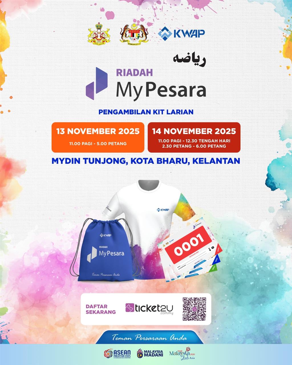 Get ready to move, laugh, and celebrate active living with us in Kota Bharu, Kelantan, at Riadah MyPesara 2025. A day filled with fun, fitness, and family vibes, brought to you by Kumpulan Wang Persaraan (Diperbadankan) (KWAP) (“the Organizer”).