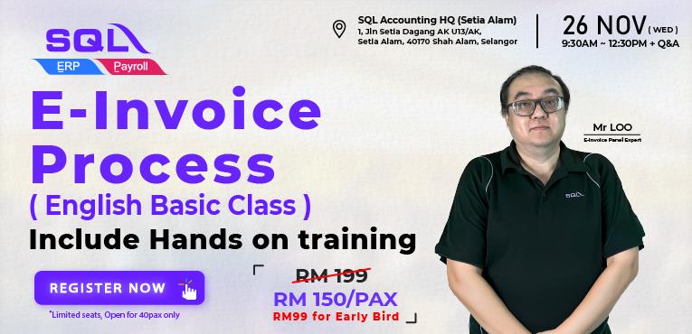 Who should attend: Accountants, business owners, tax agents, and SQL users preparing for Malaysia’s mandatory e-Invoicing rollout.