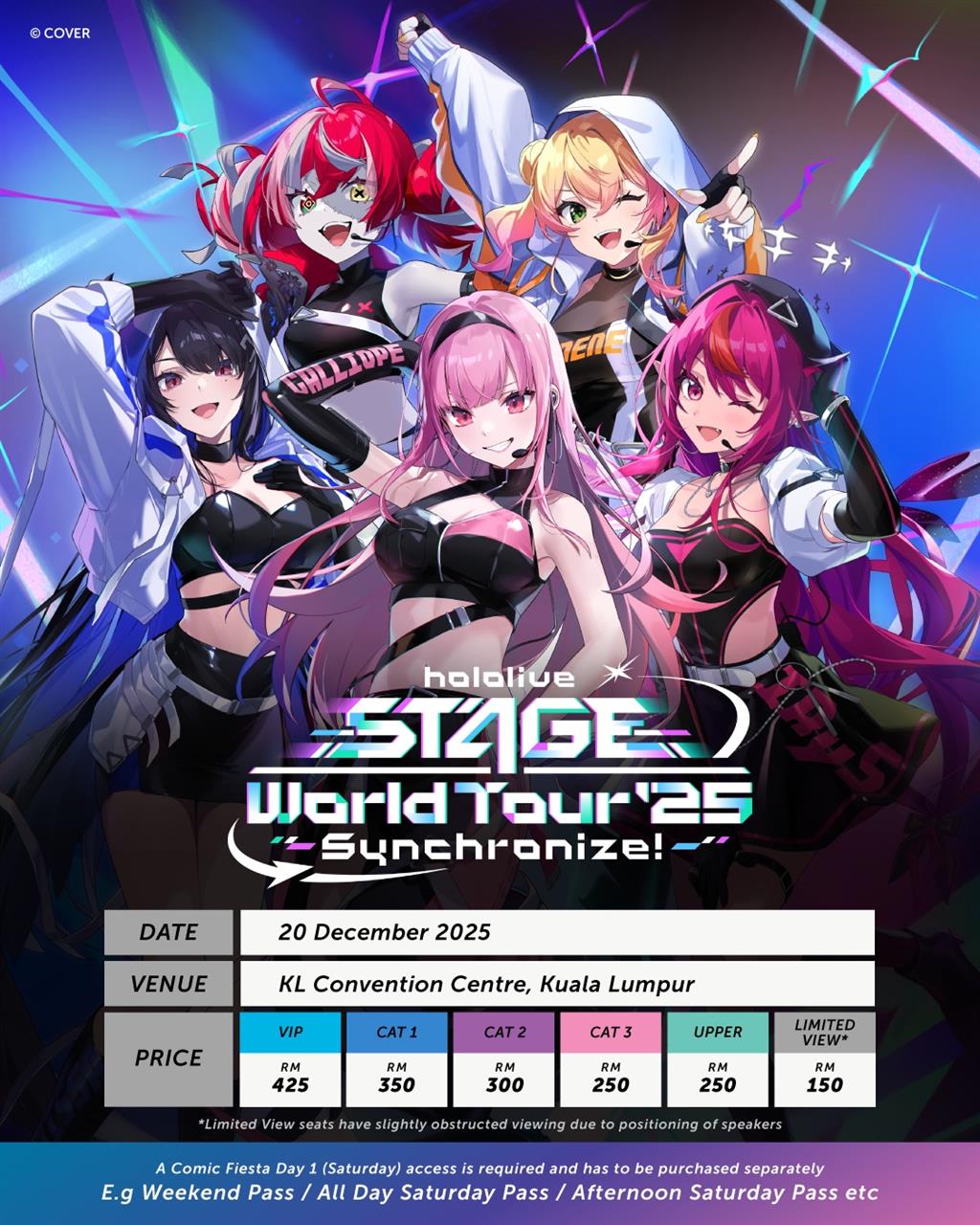 Comic Fiesta 2025 entry passes and hololive STAGE World Tour '25 -Synchronize!- concert tickets are separate tickets. Both tickets must be purchased and shown to enter concert venue.