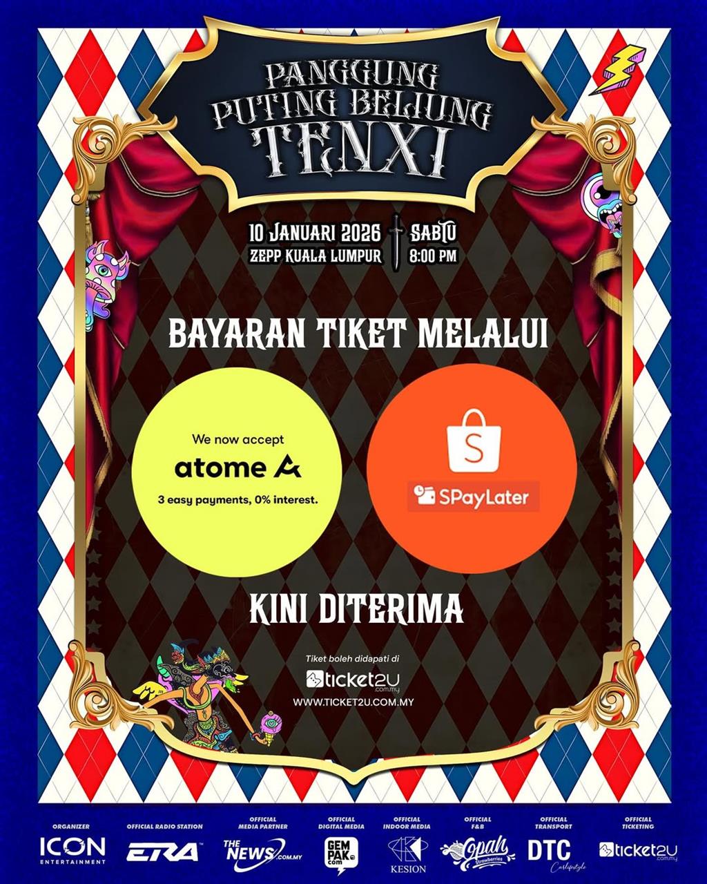 “..Manismu kaya permen, I hope this never endOh, can you be my Gwen and I’ll be the Spider-ManJadi, adakah kalian boleh menjadi Gwen buat TENXI pada 10 Januari 2026 tahun depan di ZEPP Kuala Lumpur...” 🎶Kita semua bakal bertemu pada jam 20:00 malam dalam “PANGGUNG PUTING BELIUNG TENXI”Kita jumpa di sana.. warga TENXIHOLICTiket Dengan Harga:RM 130 (Berubah)RM 150 (Kasih Aba-Aba)RM 190 (Menjikuhibiniku)RM 220 (Garam & Madu)RM 5000 (Bintang 5)📍Tiket-tiket tersebut boleh didapati di:https://www.ticket2u.com.my/TenxiYukkkk semua TENXIHOLIC di Malaysia.. sampai jumpa! 🇲🇾