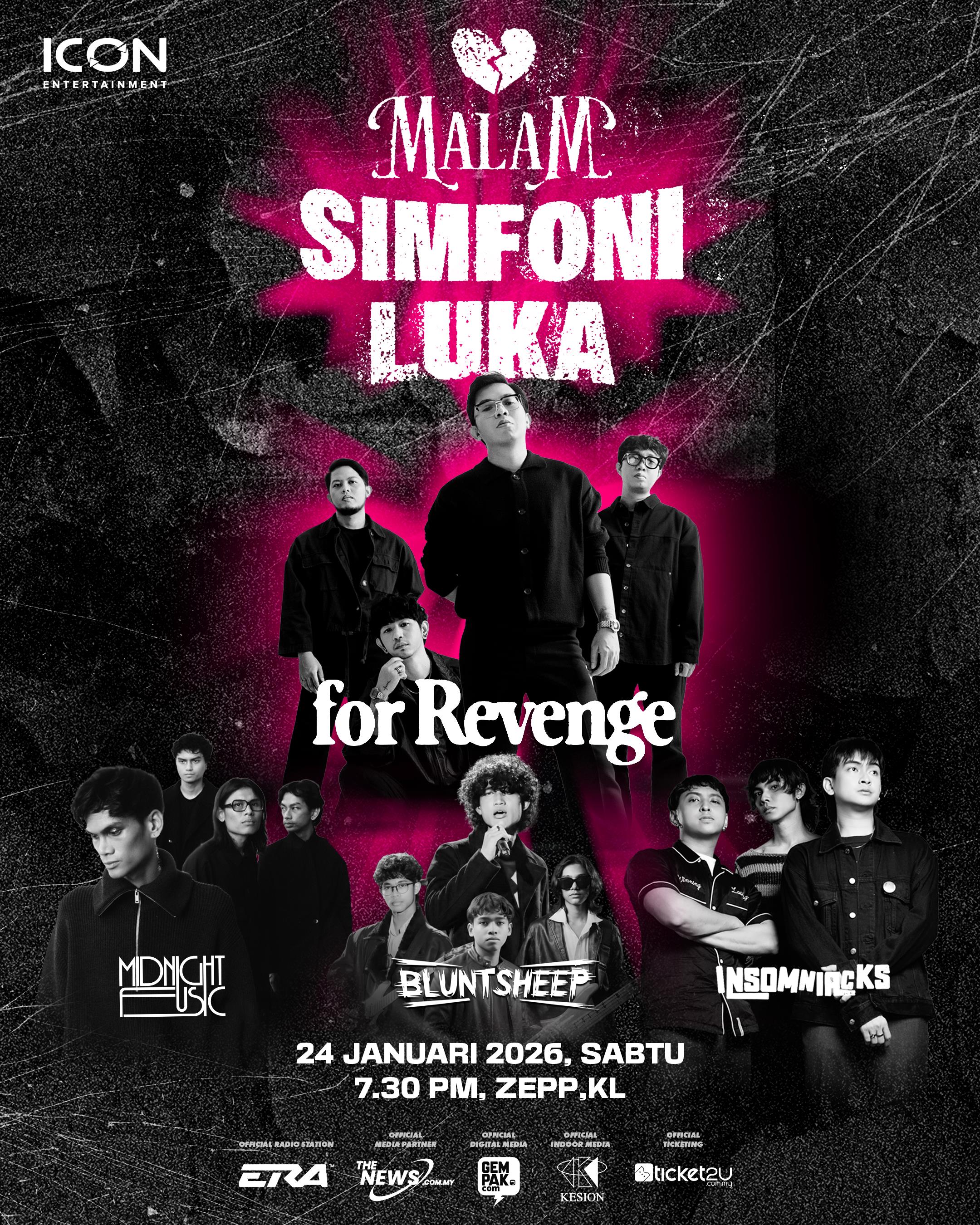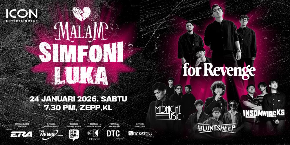 Dengan Igauan Malam…Bersama Sandiwara….…… Kala Luka BerpestaSemua ini dengan kombinasi rasa, lagu, patah kata… Kita semua akan meraikan Malam Simfoni Luka bersama-sama ..Tarikh: 24 Januari 2026 (Sabtu)Jam: 7:30 malamTempat: ZEPP Kuala LumpurBertemu MATA dan RASA bersama FOR REVENGE @forrevengeofficial , INSOMNIACKS @insomniacks.my , MIDNIGHT FUSIC @midnightfusic hanya di malam itu… JUMPA DIMALAM KALA PARA PATAH HATI