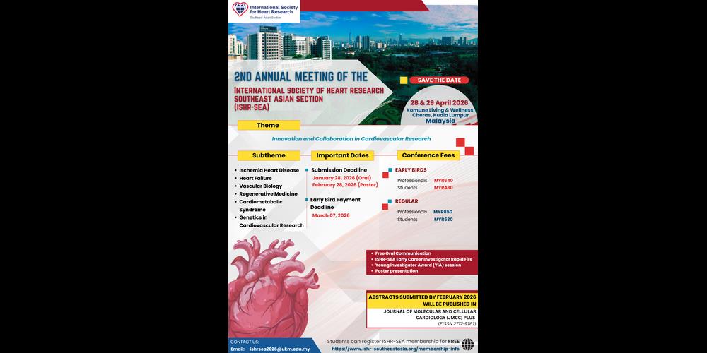 3.Meningkatkan penglibatan dan pembangunan kapasiti penyelidik muda melalui peluang pembelajaran, bimbingan, dan interaksi bersama pakar dalam komuniti penyelidikan kardiovaskular.