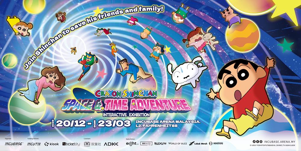 Crayon Shinchan Space & Time Adventure Interactive Exhibition (Malaysia) is open from 20 December 2025 to 23 March 2026, daily from 10:00 AM to 9:00 PM.