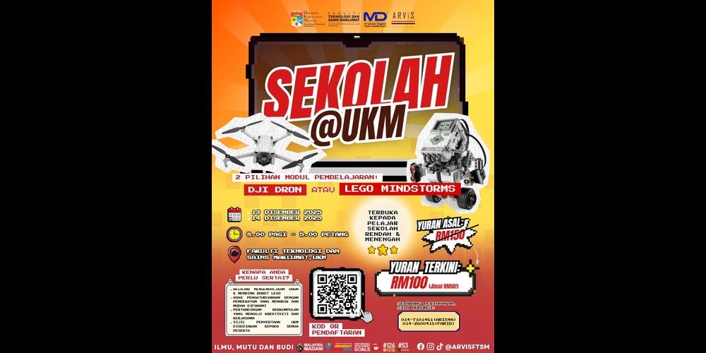 School@UKM melibatkan dan terbuka kepada pelajar sekolah rendah dan menengah. Kelab Arvis akan mengadakan bengkel robotik untuk menimba ilmu berkenaan robotik dengan lebih mendalam