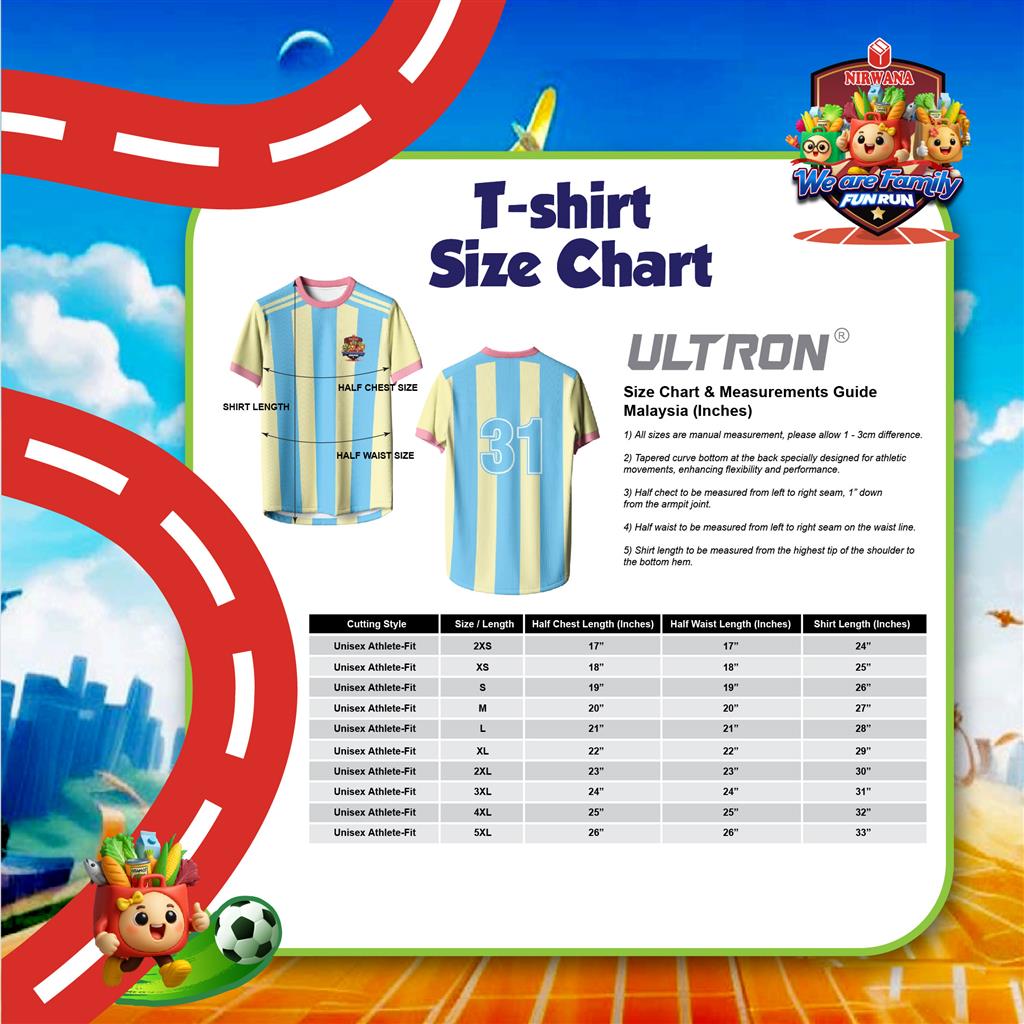- Participants are unable to modify their shirt size once registration is completed. The Organizer will provide the T-shirt based on the specified size stated in the registration form. (If any of the specific sizes are unavailable, the organizer has the right to replace the stated sizes with a different size)