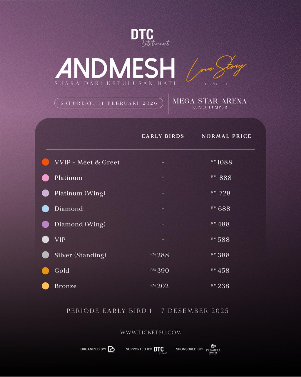 Purchase of ticket shall only be made in our designated website at https://www.ticket2u.com.my/(“Website”), Any Ticket purchased from any other source may be unauthorised copies and purchaser(s) may be refused admittance to the Event.