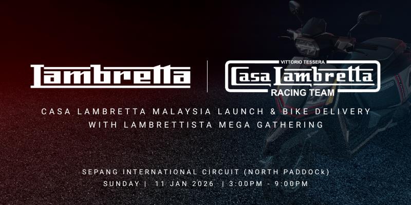 Casa Lambretta Launch & Delivery Day marks a milestone for Lambretta Malaysia, combining motorsport excitement with Italian design. At Sepang International Circuit (SIC), Casa Lambretta bikes will be delivered in a racing-inspired showcase and celebrated with the biggest Lambretta community gathering, featuring track demonstrations and lifestyle experiences under the theme “Racing Spirit of Lambretta.”
