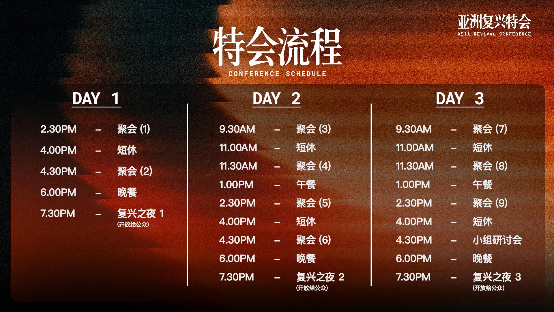 *三个晚上的 “复兴之夜” 开放给公众参与,无需报名付费。