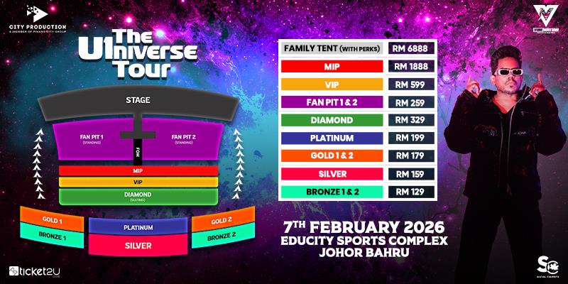 Purchase of ticket shall only be made in our designated website at https://www.ticket2u.com.my/(“Website”), Any Ticket purchased from any other source may be unauthorised copies and purchaser(s) may be refused admittance to the Event.
