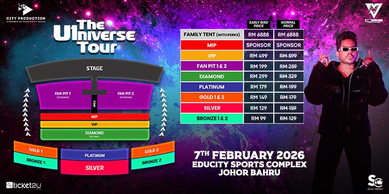 Purchase of ticket shall only be made in our designated website at https://www.ticket2u.com.my/(“Website”), Any Ticket purchased from any other source may be unauthorised copies and purchaser(s) may be refused admittance to the Event.