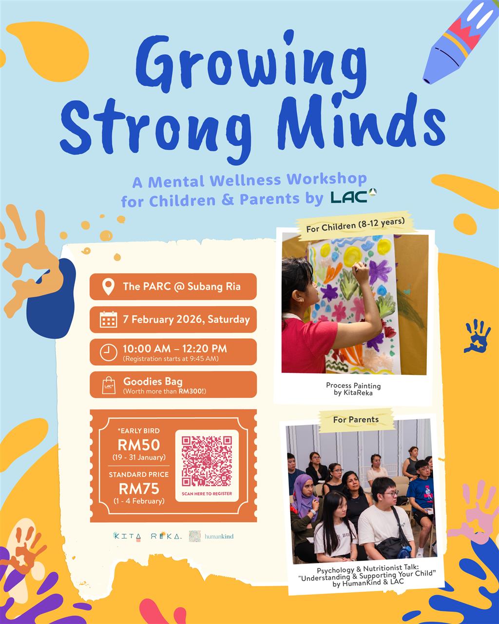 Our expert-led sessions bring together the best of psychology and nutrition. Anisah Johan from HumanKind will share practical tools for understanding your child’s emotional warning signs and improving communication, while Cynthia Jetan, our LAC Nutritionist, will explore how the right nutrients and food choices can directly support your child’s brain function and emotional well-being.