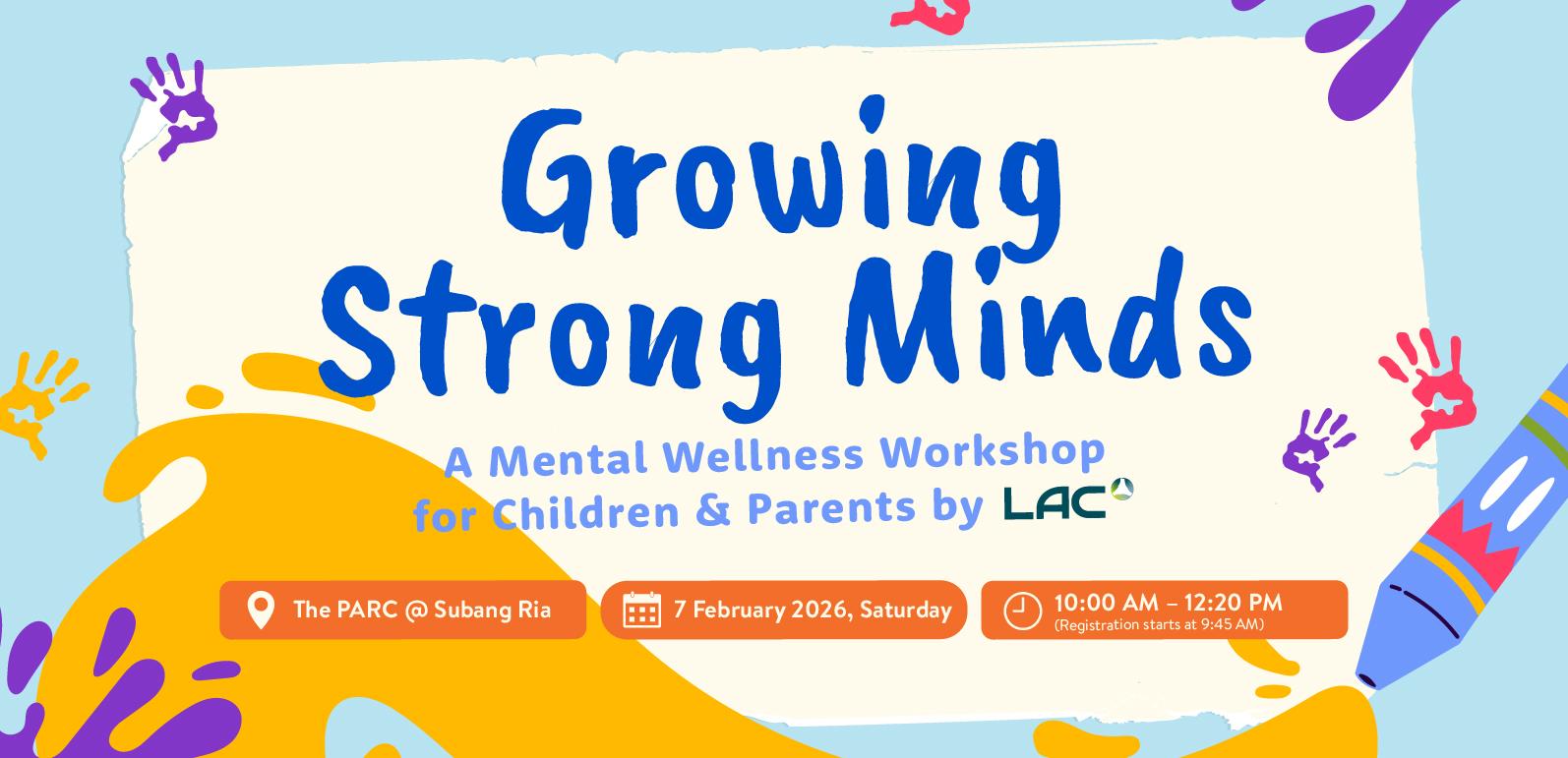 Growing up isn't always easy, and sometimes our kids need a little extra help navigating their big feelings—and as parents, we need the right tools to support them, too. Join us for 'Growing Strong Minds,' an interactive workshop by LAC designed for parents and children to learn, connect, and grow together.