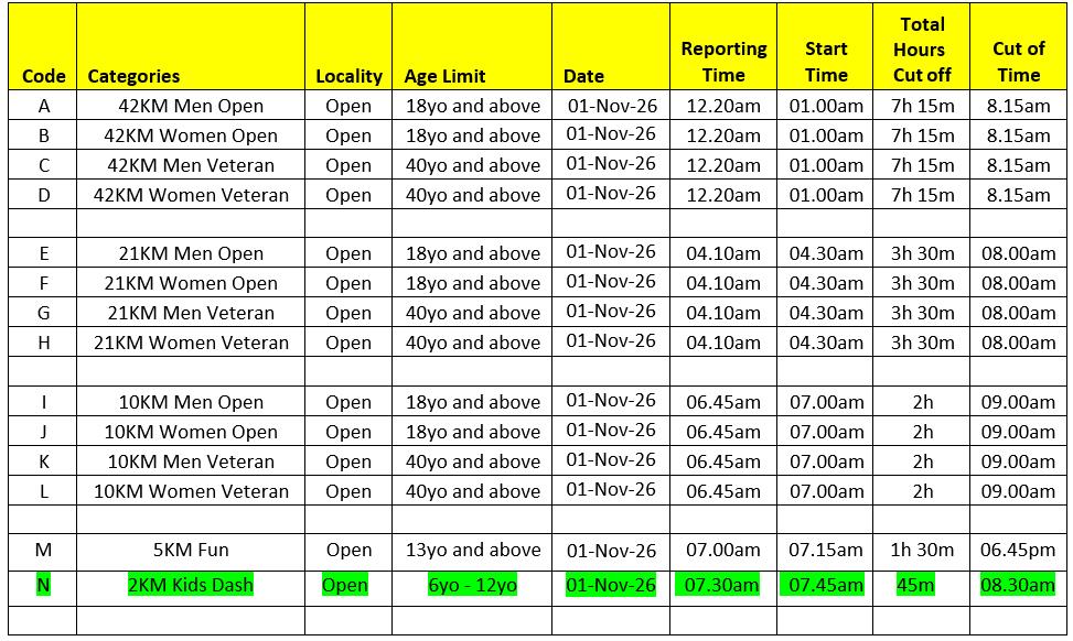 * This race is open to all ages 18 years old and above only. For Fun Run, parents/guardian concern is required for participants aged 6-17 years old.