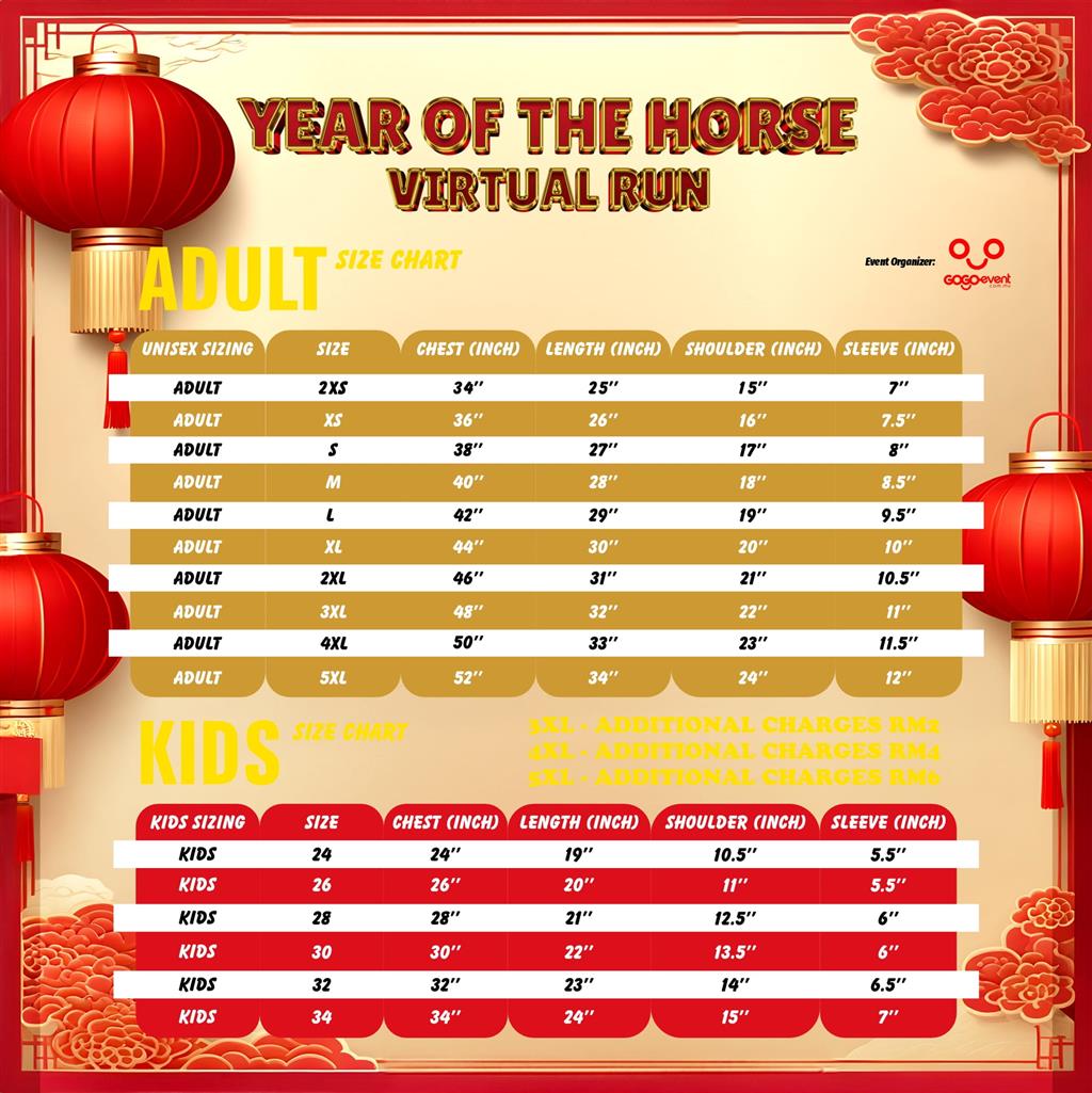 *Additional charges for T-shirt size : 3XL (+RM2), 4XL (+RM4), 5XL (+RM6)