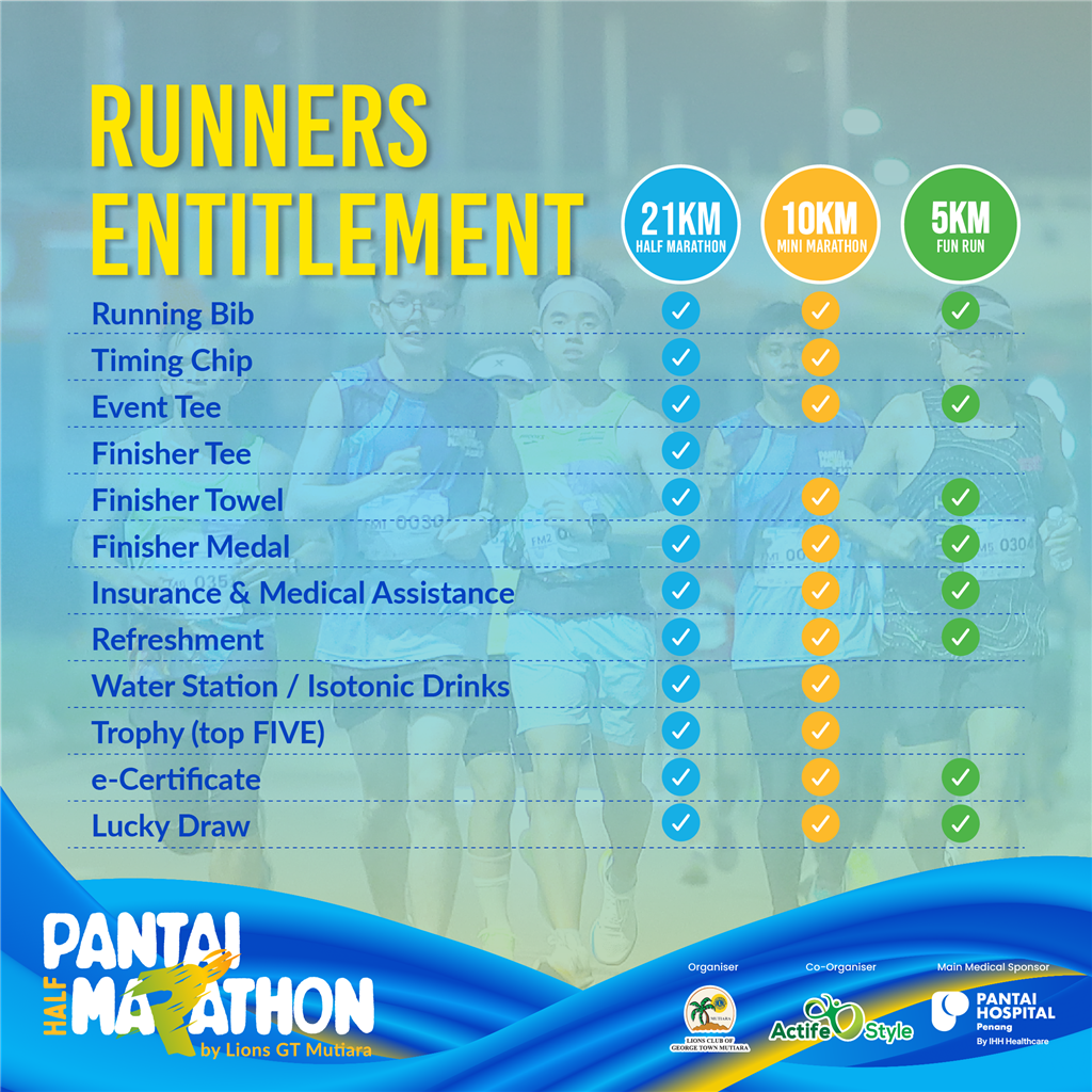 - The minimum age for participation for the competitive run (21KM) is 18 years old at the date of the event. No pets, or any form of wheel-run objects of transport e.g. inline skates, prams, strollers, push cars, shoes with built-in or attached rollers are not allowed on the course during the race except official race and medical vehicles. Organiser reserves the right to remove participants who fail to adhere to the stipulated rules and regulations from the race route immediately.