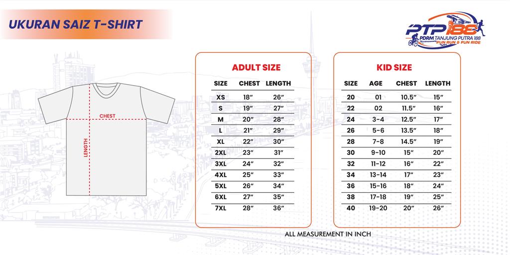 6. Setelah pengesahan penyertaan dibuat, sebarang permintaan untuk menukar saiz baju atau butiran lain tidak akan dilayan dalam apa jua keadaan. Peserta dinasihatkan untuk memastikan semua butiran adalah tepat sebelum membuat pengesahan.