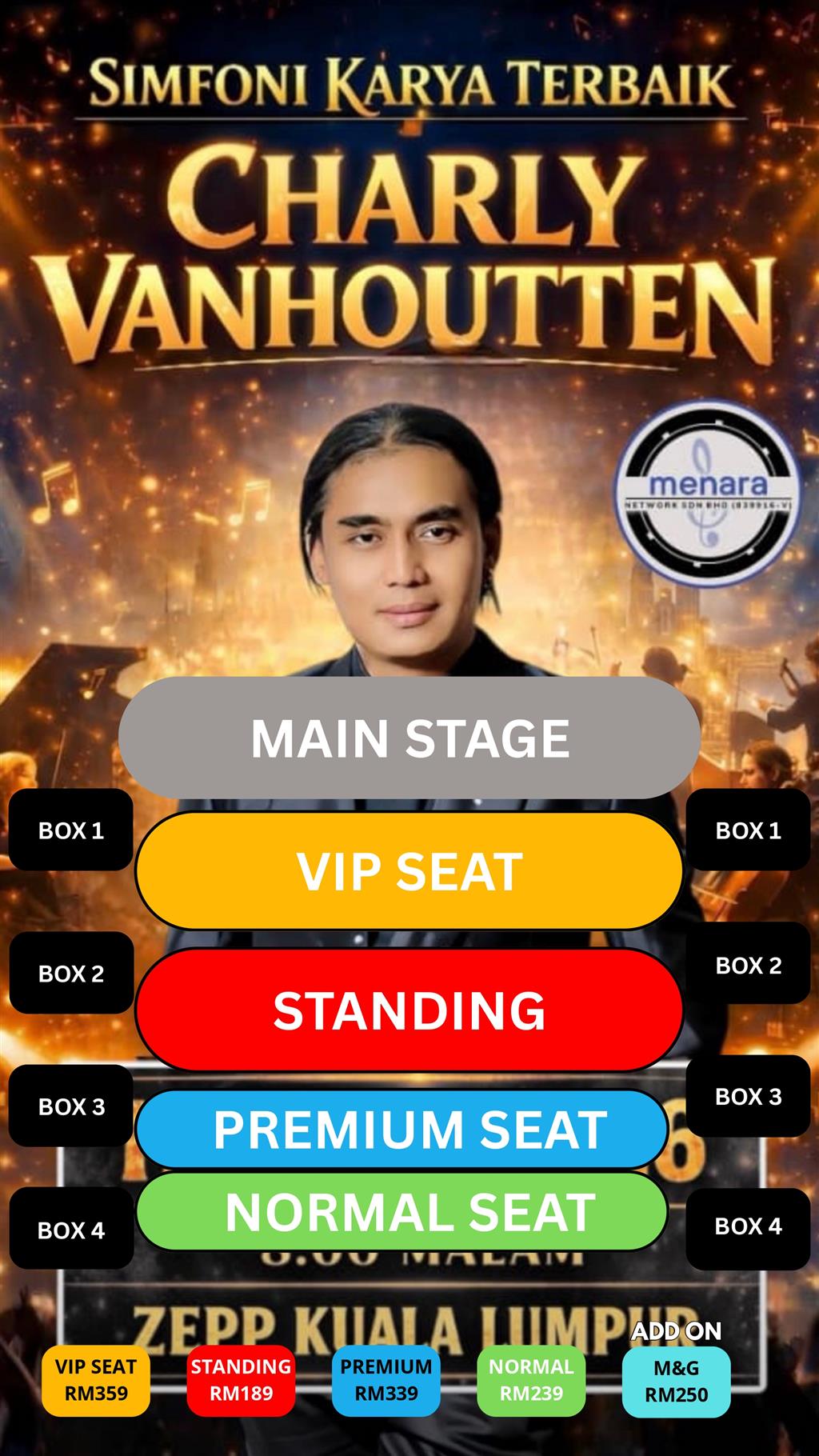 Purchase of ticket shall only be made in our designated website at https://www.ticket2u.com.my/(“Website”), Any Ticket purchased from any other source may be unauthorised copies and purchaser(s) may be refused admittance to the Event.