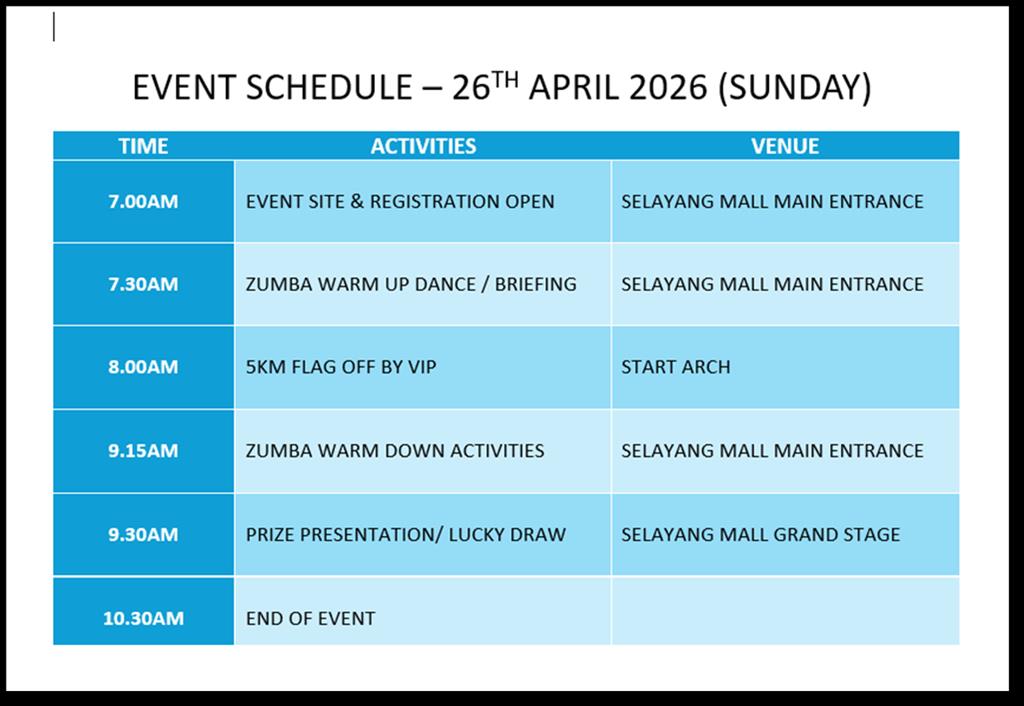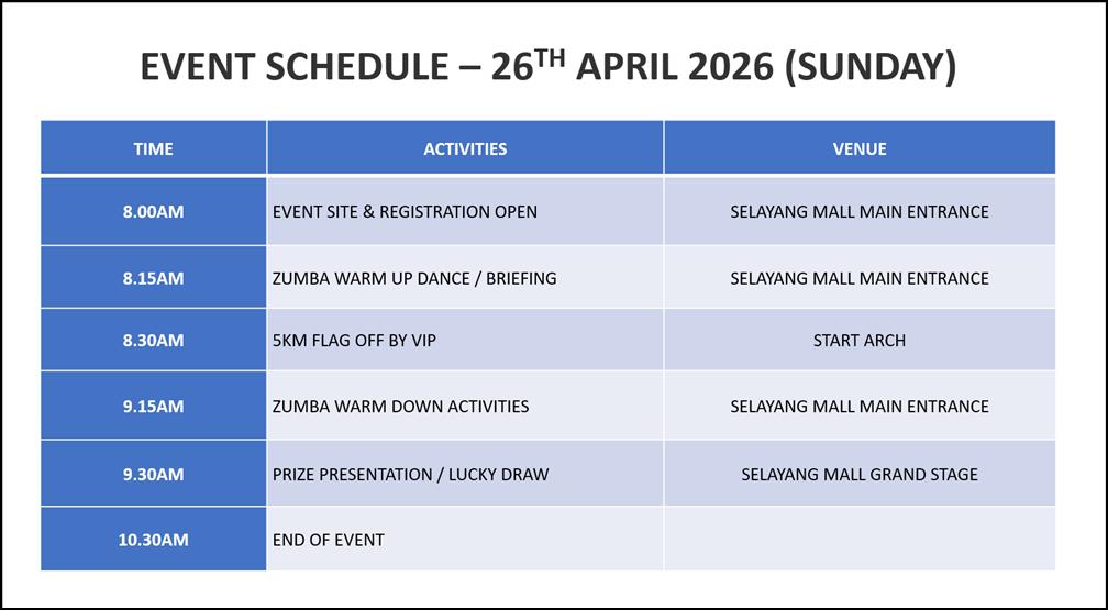 - Minimum age for Fun Run Race is 7 years of age on 31 Dec 2025 to participate in the race.