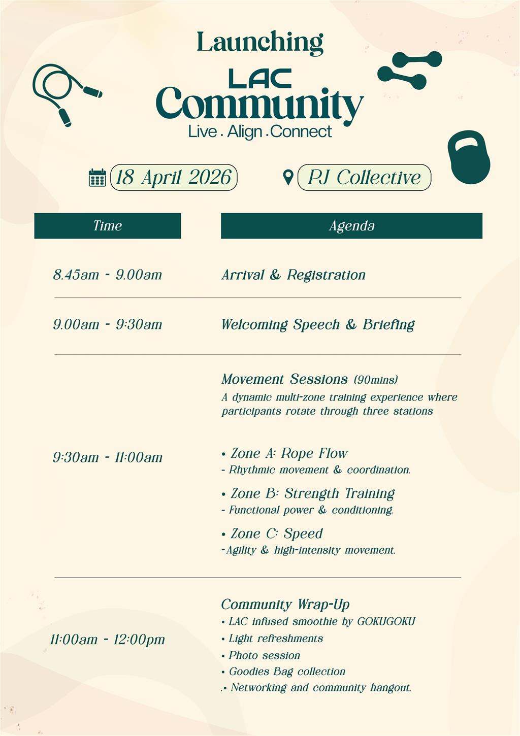 2. E-tickets for “LAC Community Launch x PJ Collective” are non-refundable once purchased but are transferable. If you are unable to attend, you may transfer your ticket to another participant by notifying us at [email protected] at least 24 hours before the event.