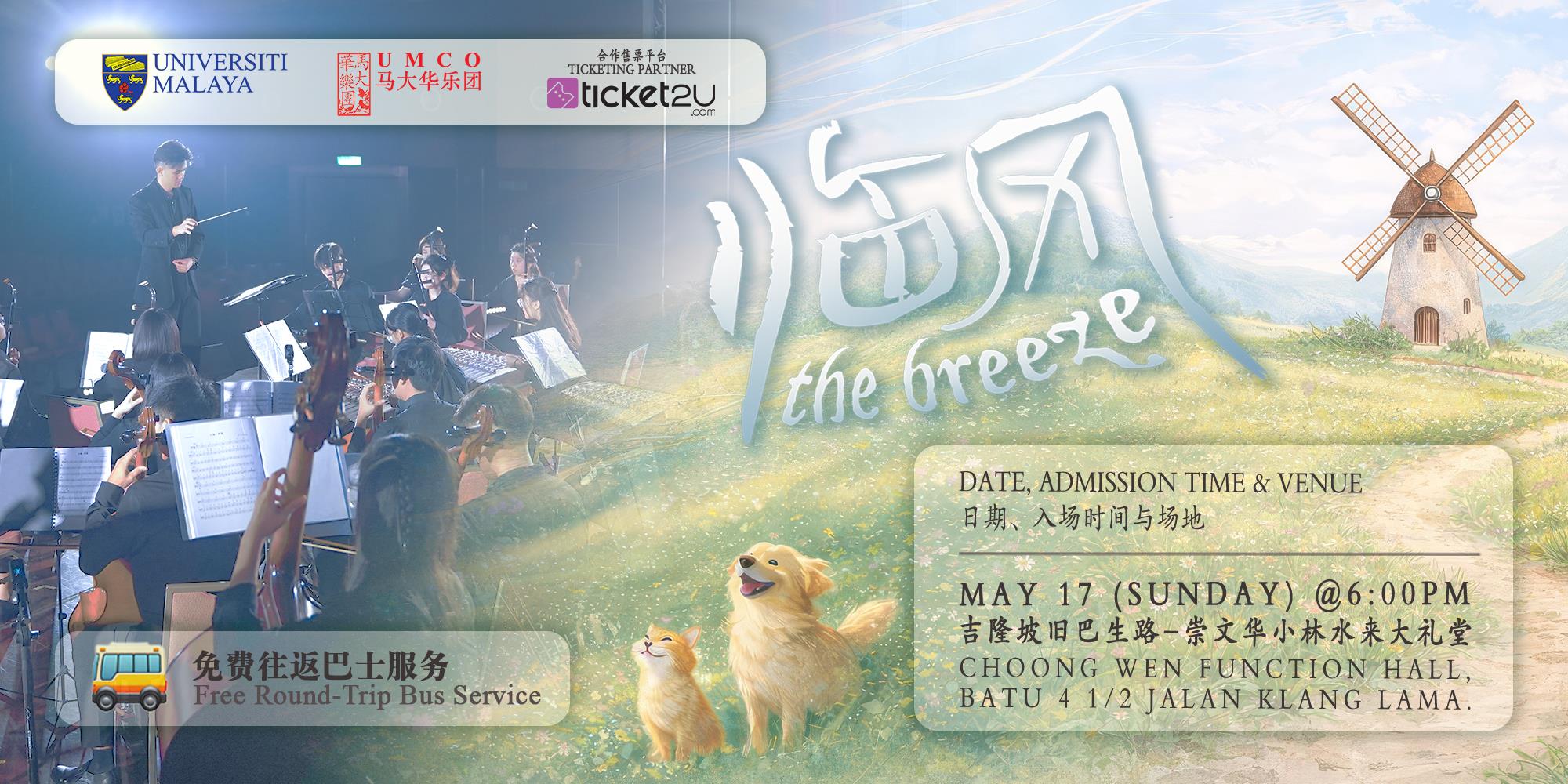 Music is like the wind, formless, yet moving. The 2026 Annual Concert of the Universiti Malaya Chinese Orchestra, “the breeze”, celebrates the freedom and resonance of melodies, flowing gently and expressively to showcase the beauty of Chinese orchestral music.
