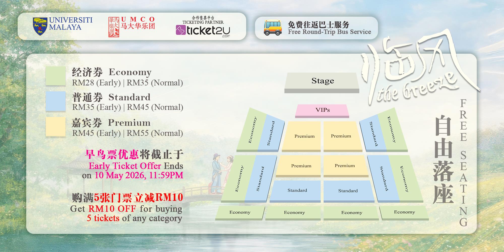 - Purchase any 5 tickets to enjoy a RM10 discount