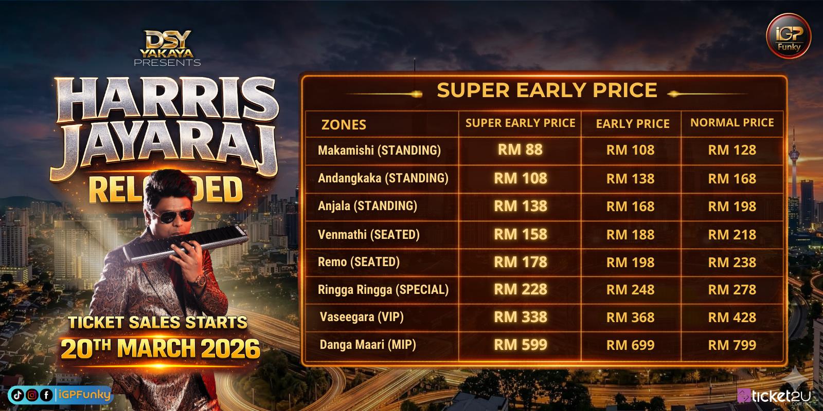 Ticket2u/Organizer reserves the rights to change or amend any terms and conditions at any time at its sole and absolute discretion without prior notice.