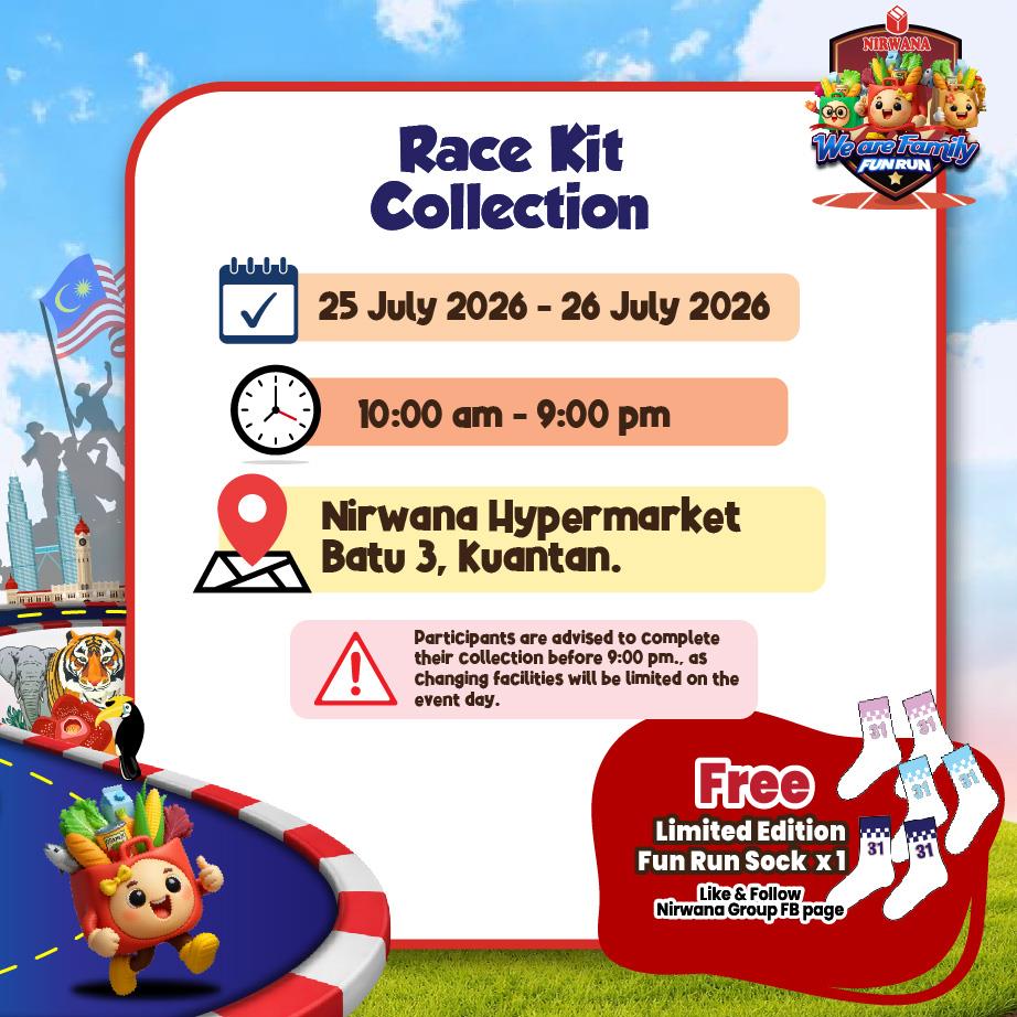 - Race kit (event T-shirt and other items) must be collected during the designated collection period. Late collection will not be entertained, and uncollected kits may be disposed of or redistributed. The Organizer may extend the collection time at the Organizer discretion and on a goodwill basis only. For the avoidance of doubt, the Organizer is not obliged to extend the collection time or to ensure the participant receive their race entry pack.