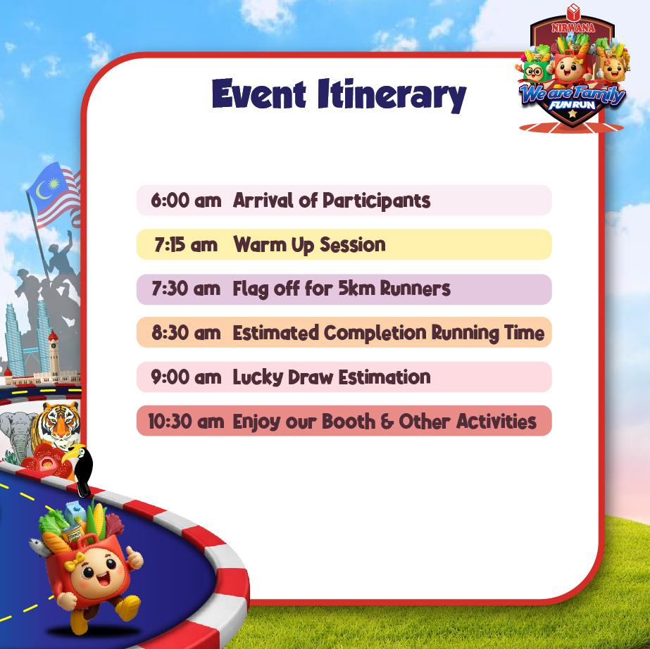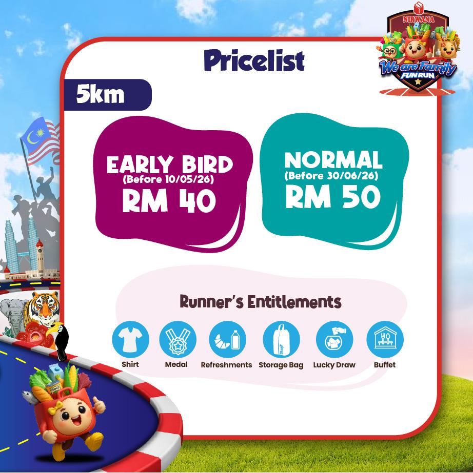 These Terms & Conditions govern participation in the Nirwana Merdeka Fun Run 2026 (Kuantan) - We are Family! By registering, participants agree to abide by all rules set by the Organizer. The Organizer reserves the right to modify, substitute, or update these terms and event rules at any time without prior notice. If there is any ambiguity in any of the provision of the terms, the Organizer will be the authority to interpret and in so doing, the Organizer will take into account the interest of all affected participants. The decision of the Organizer shall be final and binding. If there is any changes of the event, it is the responsibility of the participants to keep abreast with such updates and changes.