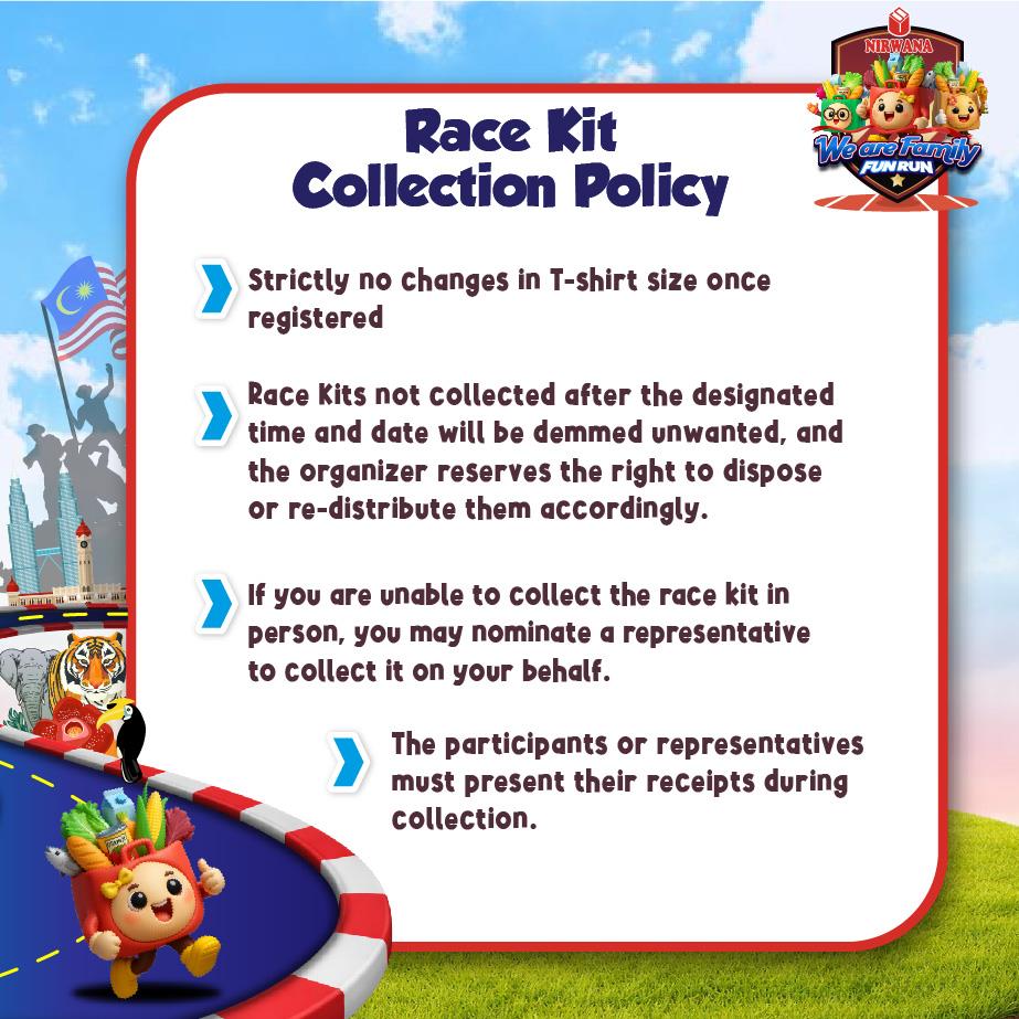 - Race kits not collected after the designated time and date will be deemed unwanted, and the organizer reserves the right to dispose or re-distribute them accordingly.