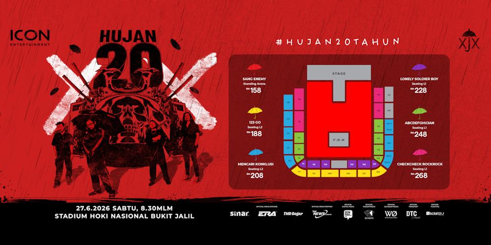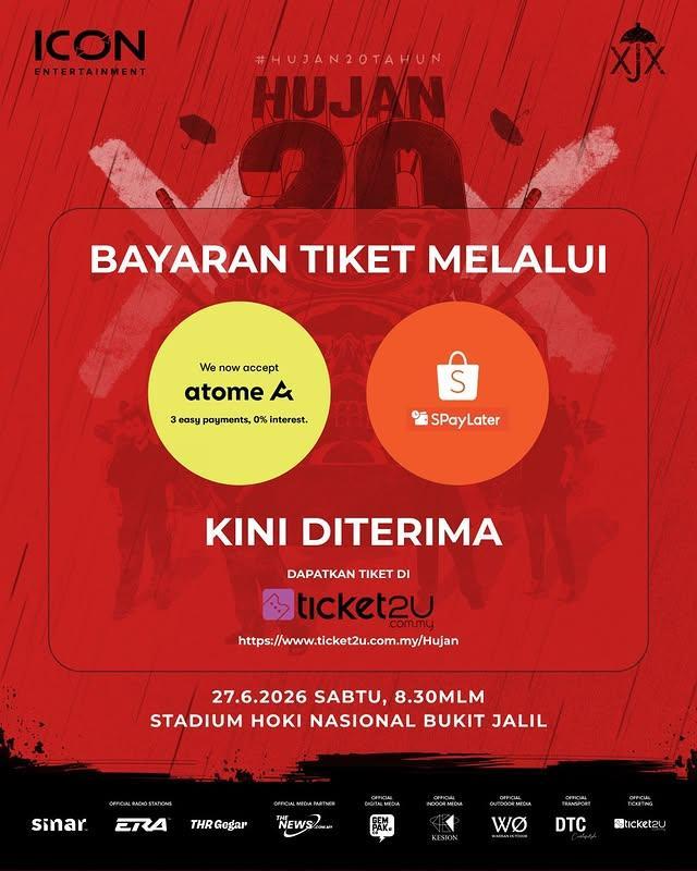 Tiket akan mula dijual pada Jumaat, 10 April 2026, 3:00 petang.Penganjur: ICON EntertainmentX☂️X#hujanXX#XX#IconEntertainment#supportLOKAL