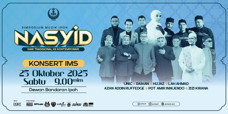 | IPOH MUSIC SIMPOSIUM V7 "Nasyid: Dari Tradisional ke Kotemporari" | Sat, 10/25/202510/25/2025 Dewan Bandaran Ipoh 2700, Jalan Panglima Bukit Gantang Wahab, 30000 Ipoh, Perak | |