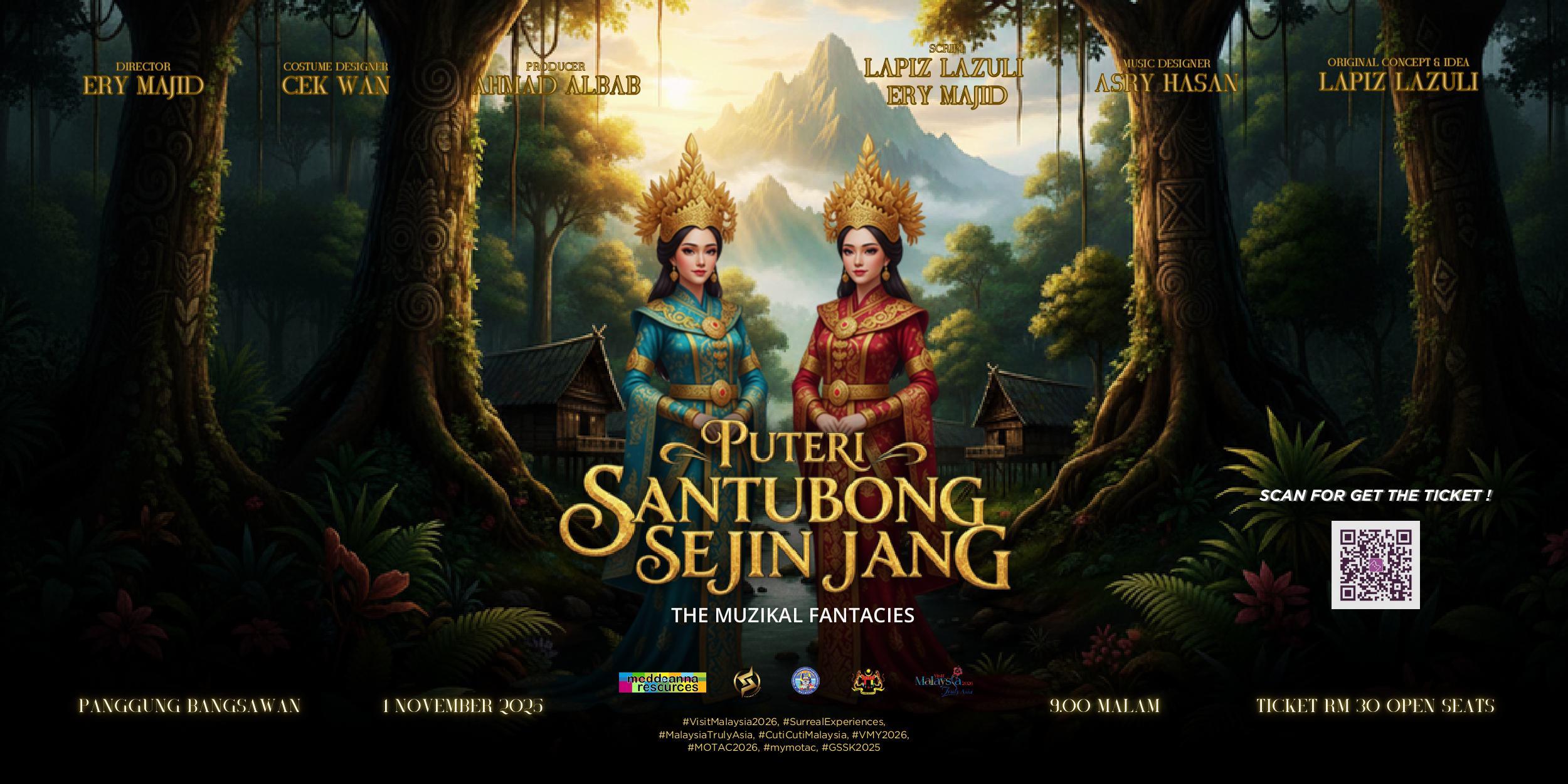 | Puteri Santubong Sijinjang The Musical Theatre | Sat, 11/1/202511/1/2025 Panggung Bangsawan Melaka 20, Jalan Munshi Abdullah, Kampung Jawa, 75100 Melaka, Malaysia | |